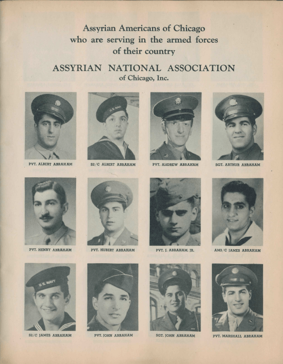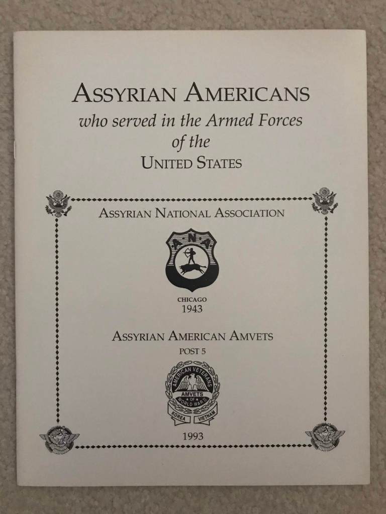 My uncle enjoys estate sale shopping, so in 2016, when he was cleaning out his house in order to move, he came across many interesting items that he had acquired over the years. One of those items included a booklet, bound in an unassuming, brown cover. Inside this booklet, dated 1944 (the year before World War II ended), it says, “Assyrian Americans of Chicago who are serving in the armed forces of their country. Assyrian National Association of Chicago, Inc.” With the exception of a brief introduction to who Assyrians are, the rest of this booklet depicts black and white photos of Assyrian soldiers, listed in alphabetical order by last name. My uncle knew that I would enjoy this book, so he gave it to me. Ever since then, I have attempted to track down its history.