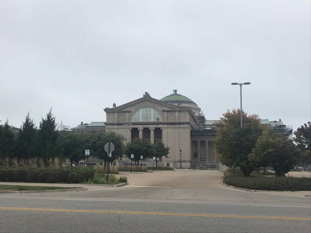 The Museum of Science and Industry in Chicago is one of the only surviving buildings from the 1893 Chicago World’s Fair, also known as the World’s Columbian Exposition, which was in Jackson Park, in the South Side of Chicago. Like most of the other buildings at the World’s Fair, it was built in the Beaux Arts (Greek Revival style) architectural style. Unlike many of the other buildings built for the Fair, it had a more solid structure, which is why it still stands today. Originally called the Palace of Fine Arts, and bordering a lagoon that no longer exists, the building, as its original name implies, displayed art. Original photos of the Palace of Fine Arts building can be found here: https://chicagology.com/columbiaexpo/fair039/