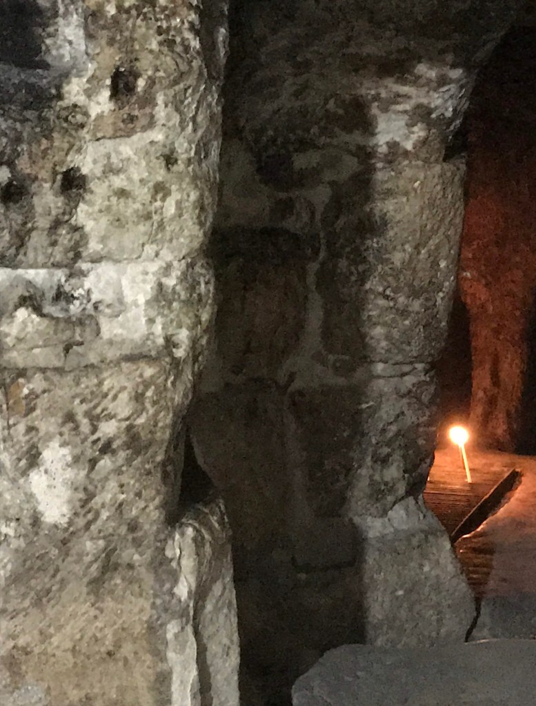Since the early Christian church endured enormous persecution when it began, nobody can be sure if the Church of the Holy Sepulchre is over the actual place where Jesus died. However, the Church of the Holy Sepulchre is built over ancient tombs that may date to that period. Jesus is believed to have been buried outside of Jerusalem’s city walls. Since the Church of the Holy Sepulchre is inside the walled Old City of Jerusalem, this may seem confusing. However, the current walls of the Old City were built during the 16th century under the Ottoman Empire. I was told that the Church of the Holy Sepulchre would have been outside of Jerusalem’s city walls during the Roman era.