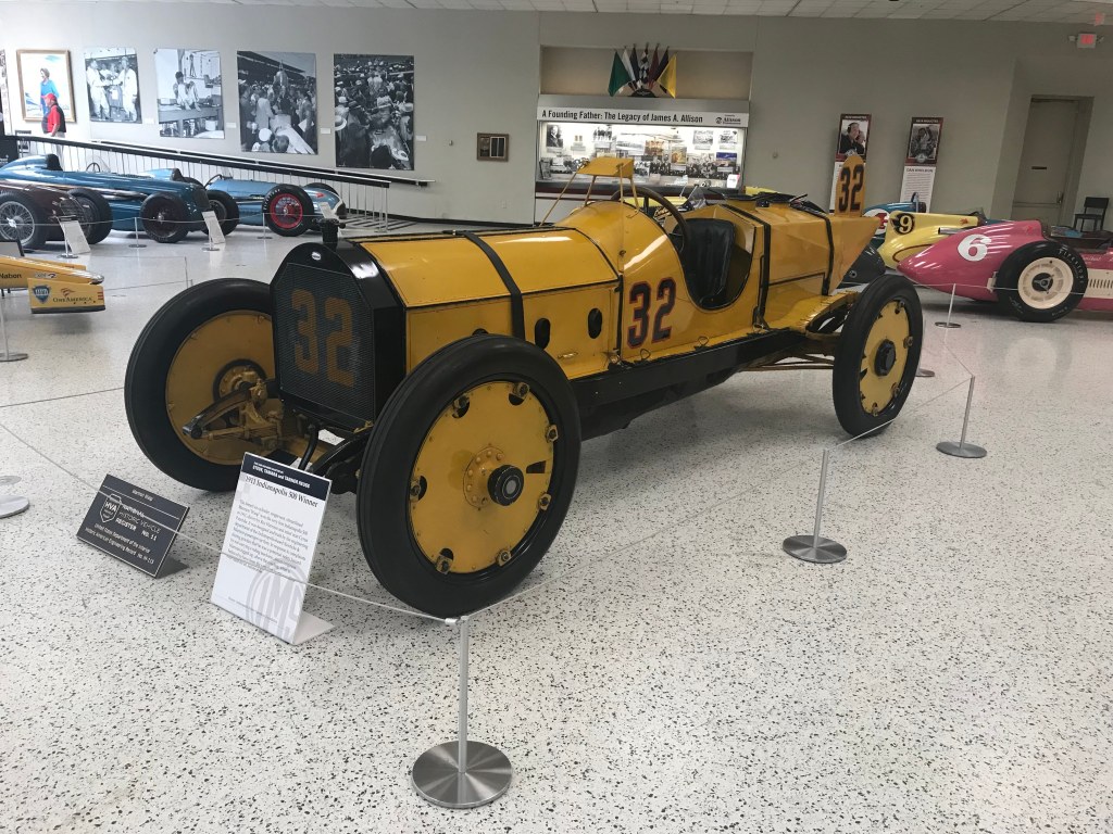 The Museum includes the Indianapolis Motor Speedway Hall of Fame, which is a large plaque that contains the names of different race car drivers. However, the main exhibit at the museum was a room full of race car winners from different decades. Not every Indy 500 race car winner is there, but many are there, including the first winner from 1911. Walking around the room is like walking through an Indy 500 timeline. It is interesting to look at how race cares have changed over the years. The Indy 500 has faithfully occurred every year except during parts of WWI (from 1917 to 1918), and WWII (from 1942 to 1945). Other points of interest at the Museum are a temporary exhibit section, an 8-minute video about the history of the Indy 500, a race car driving simulator, and a variety of other race cars and suits.