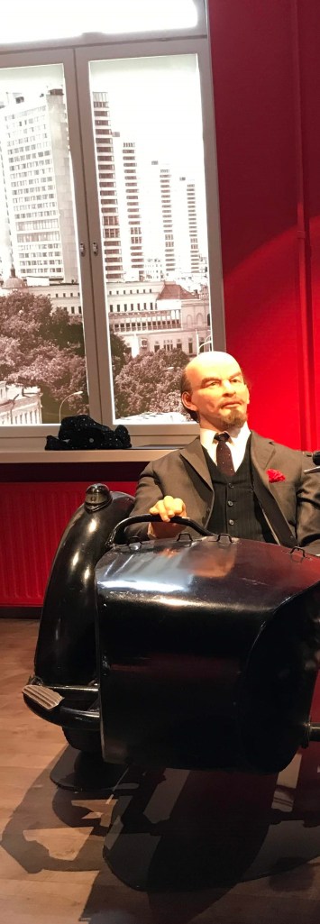 Perhaps the strangest part of the museum were the two wax figures near the entrance of the Museum. One is of Lenin in a motorcycle sidecar, and the other is of Stalin standing nearby. Visitors are welcome to dress up (put on a leather jacket and driving goggles) and sit on the motorcycle that “drives” Vladimir Lenin’s sidecar, and then take pictures. Since neither Lenin or (especially) Stalin are viewed favorably by most of the world today, the whole place felt strange to me. However, it was still historically interesting.