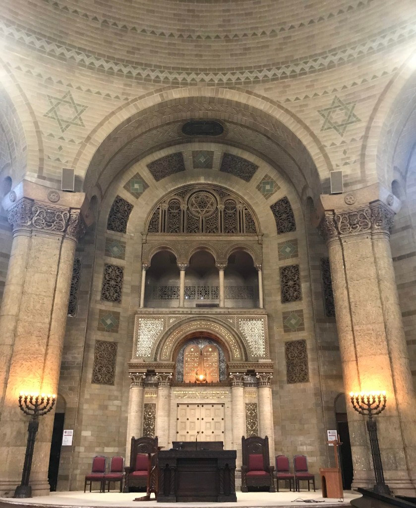 I went on a tour of KAM Isaiah Israel during Open House Chicago, an annual event in Chicago in which different museums, public buildings, houses of worship, etc. open their doors to the public for a weekend in October. Unfortunately, this year, the event will be limited to online and outdoor events, due to COVID-19: https://openhousechicago.org/. Prior to COVID-19, KAM Isaiah Israel also offered private tours of the synagogue upon request. Currently, the synagogue has been livestreaming its services, and plans to continue doing so for the upcoming Jewish High Holidays. On my tour, I was told that because of the domed ceiling, the acoustics of the synagogue are beautiful, so it might be worth listening to a livestreamed service.