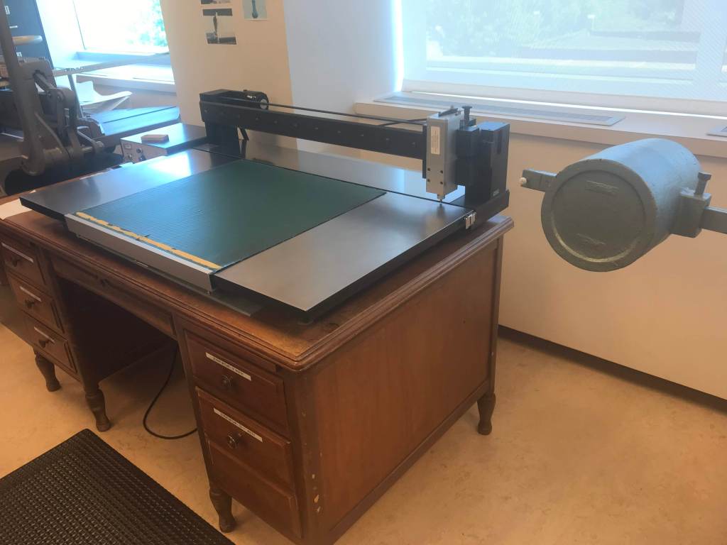 This encapsulation machine at the Abraham Lincoln Library’s conservation lab seals fragile documents between two strips of polyester film. The process only seals the edges of the polyester together, unlike lamination, which sticks the polyester onto the entire document. Since lamination uses heat, it causes more long-term damage and cannot be undone, whereas polyester can be removed from an encapsulated document.