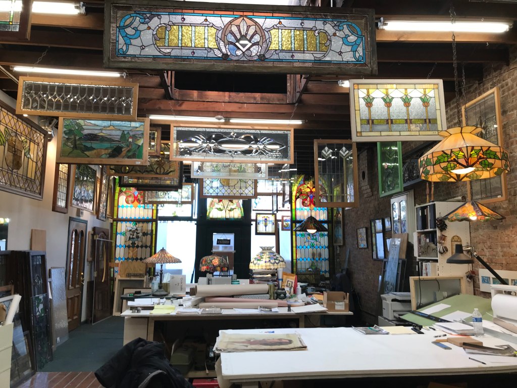 From the Gothic cathedrals of Western Europe, to the Tiffany stained glass of the United States, to the simple design of raised glass on a door, we can all appreciate the beauty of glass artists. Although I usually write about museums or libraries, for my first post of the new year, I would like to write about a stained glass art studio that I visited.