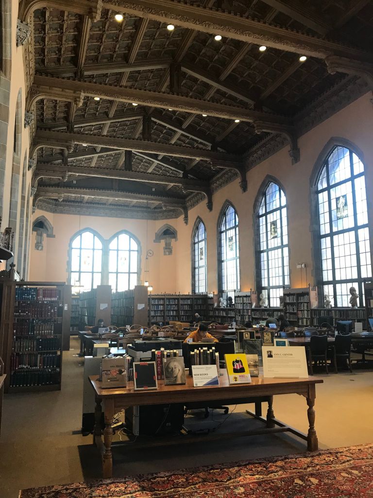 The University Library connects to the Deering Library from the third floor, and I think from the main floor as well (but I cannot remember if this 100% true). This beautiful building houses the Music collection (in scary windowless rooms), the Art collection, and the McCormick Library of Special Collections and University Archives. I tried to visit the Special Collections the last time I was at the Deering Library, but unfortunately, the old building was plagued with water damage, so the collections were temporarily moved elsewhere. However, I did see the Special Collections reading room. The Special Collections apparently houses the Leopold and Loeb Collections (see my post about Rosehill Cemetery to learn more about them), the Manzanar Relocation Camp Collection (a Japanese internment camp in the U.S. during WWII), a Spanish Civil War collection, and many other collections. Although I was not able to see any items from the Special Collections, a friendly librarian did give my friends and I a tour of the University Archives. That collection is solely dedicated to the history of Northwestern University.