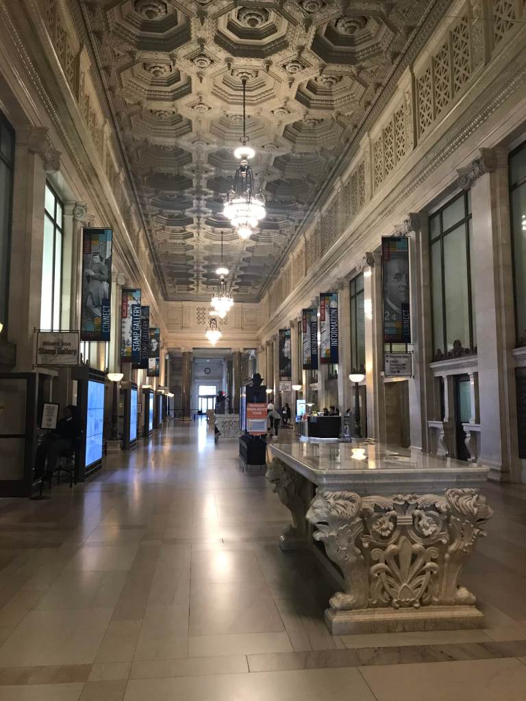 Since the National Postal Museum is in a former post office, the main entrance still has rows of personal mailboxes on its walls. One room on the main floor leads to an impressive array of stamps belonging to the National Philatelic Collection. This room is full of vertical drawers arranged with stamps that you can slide out and admire. There is also a table filled with extra stamps that visitors can touch. Collectors are welcome to take home a few of those stamps (I think it was a total of 5) from this pile.