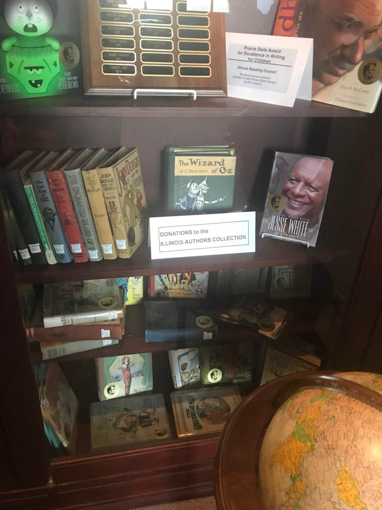 When I visited the Illinois State Library, I was disappointed because I did not realize that it did not collect material related to the history of Illinois. Of course, it has resources related to the political history of Illinois, but no other history besides that. Despite the disappointment, I did enjoy visiting the Illinois State Library’s Illinois Authors Room, which showcases the first editions of books written by people who were either born in the state of Illinois or lived there for a while. These include books by L. Frank Baum, the creator of the Wizard of Oz series, who was born in New York but lived in Chicago from 1891 to 1910. Other authors include Ray Bradbury who was born in Waukegan, Illinois and wrote the dystopian novel, Fahrenheit 451.
